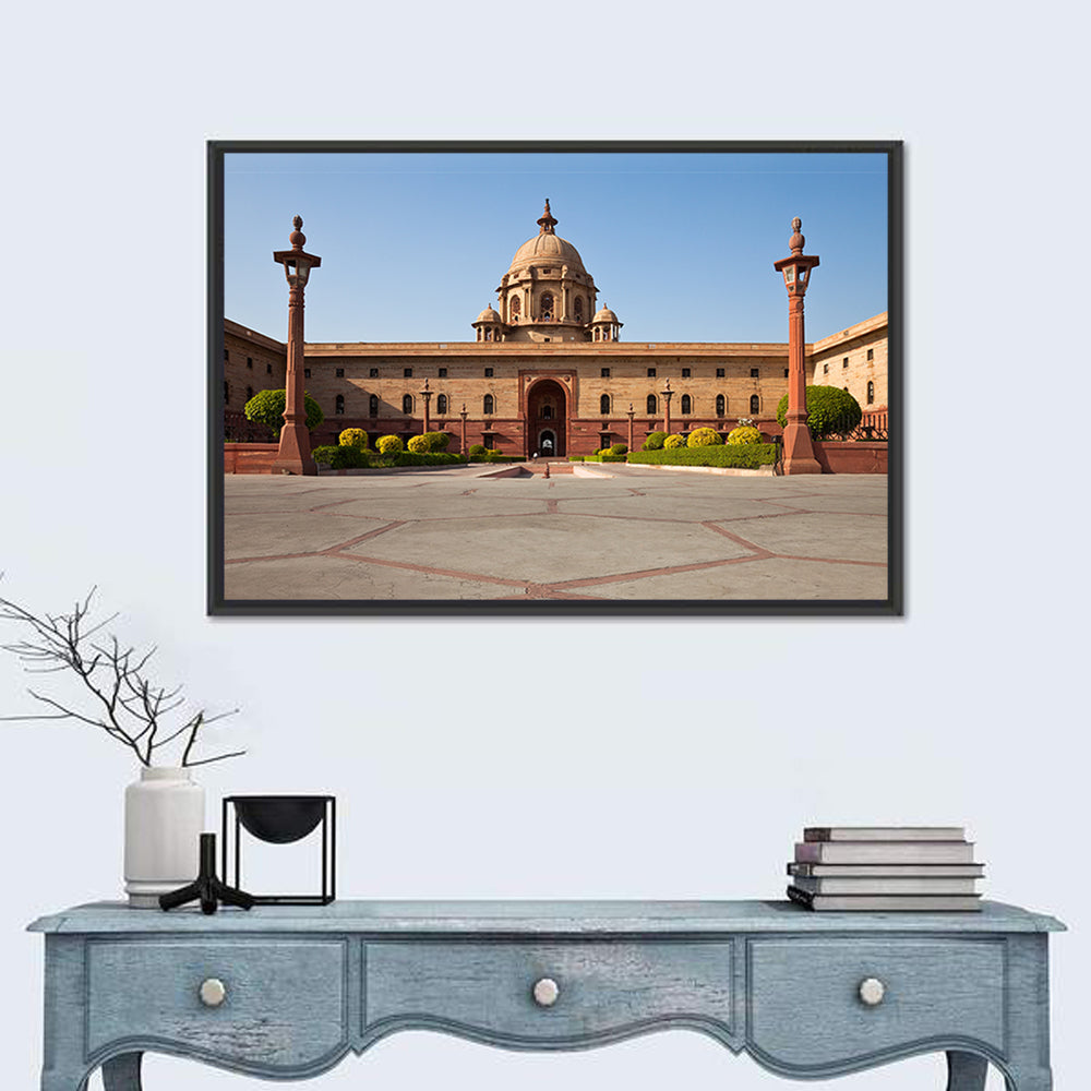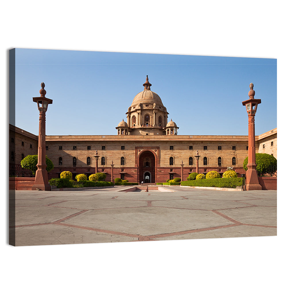 Discover the stunning art of India with this powerful and visually stunning wall art. Featuring the grand Rashtrapati Bhavan, the Presidential House, in New Delhi, this CanvasPiece print is a perfect addition to any home. Let it bring a sense of awe and appreciation to your decor.