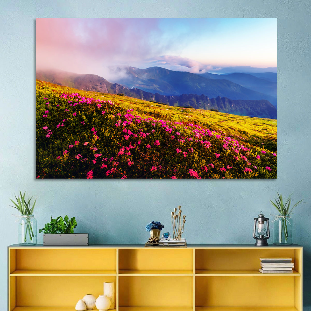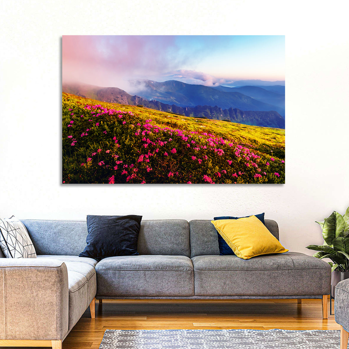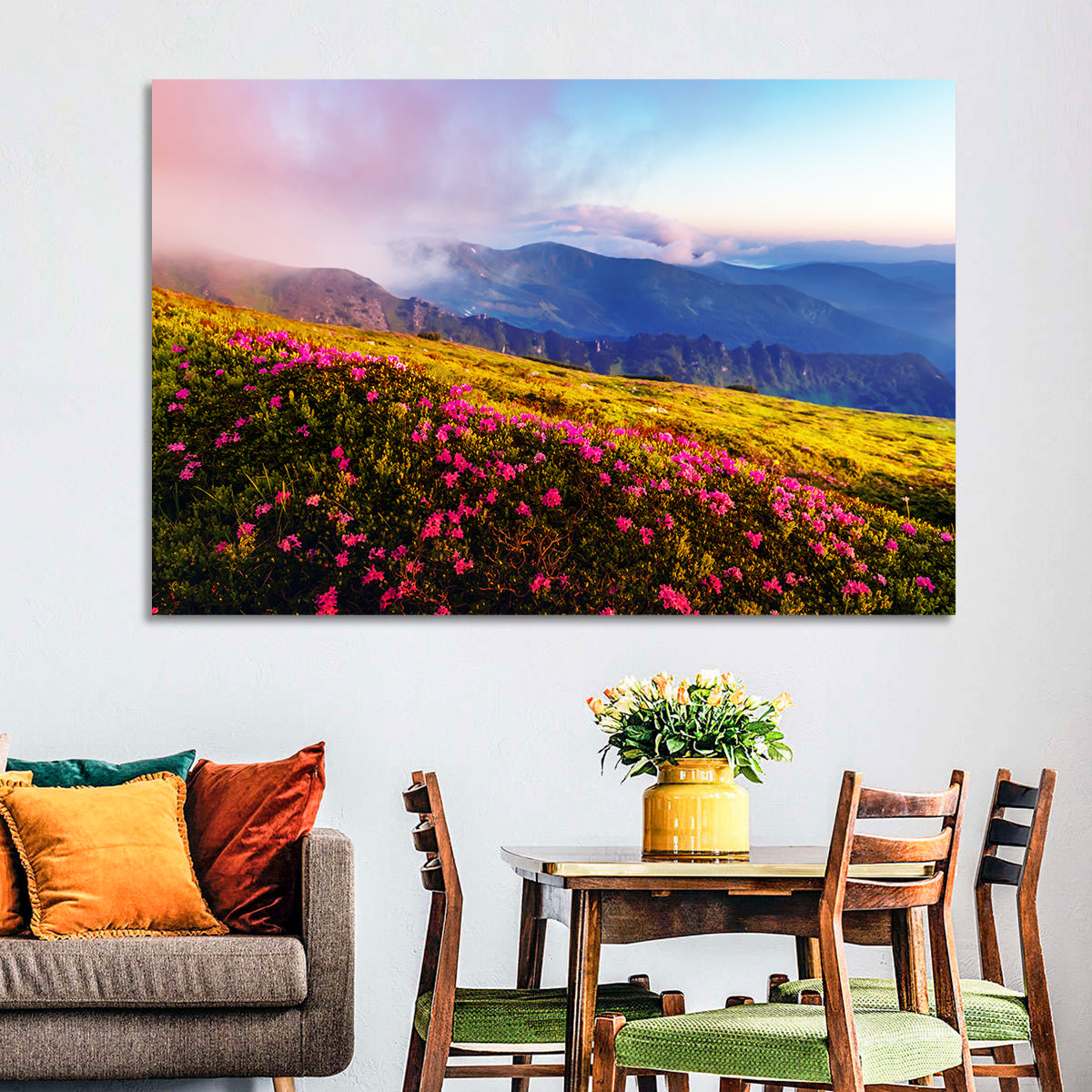 Whether you love art or just looking to decorate your home, this striking and powerful Rhododendron Floral Meadows Wall Art is an eye-catching decor element that can't go unnoticed. This art print by CanvasPiece is designed to resonate and spark a mix of feelings.
