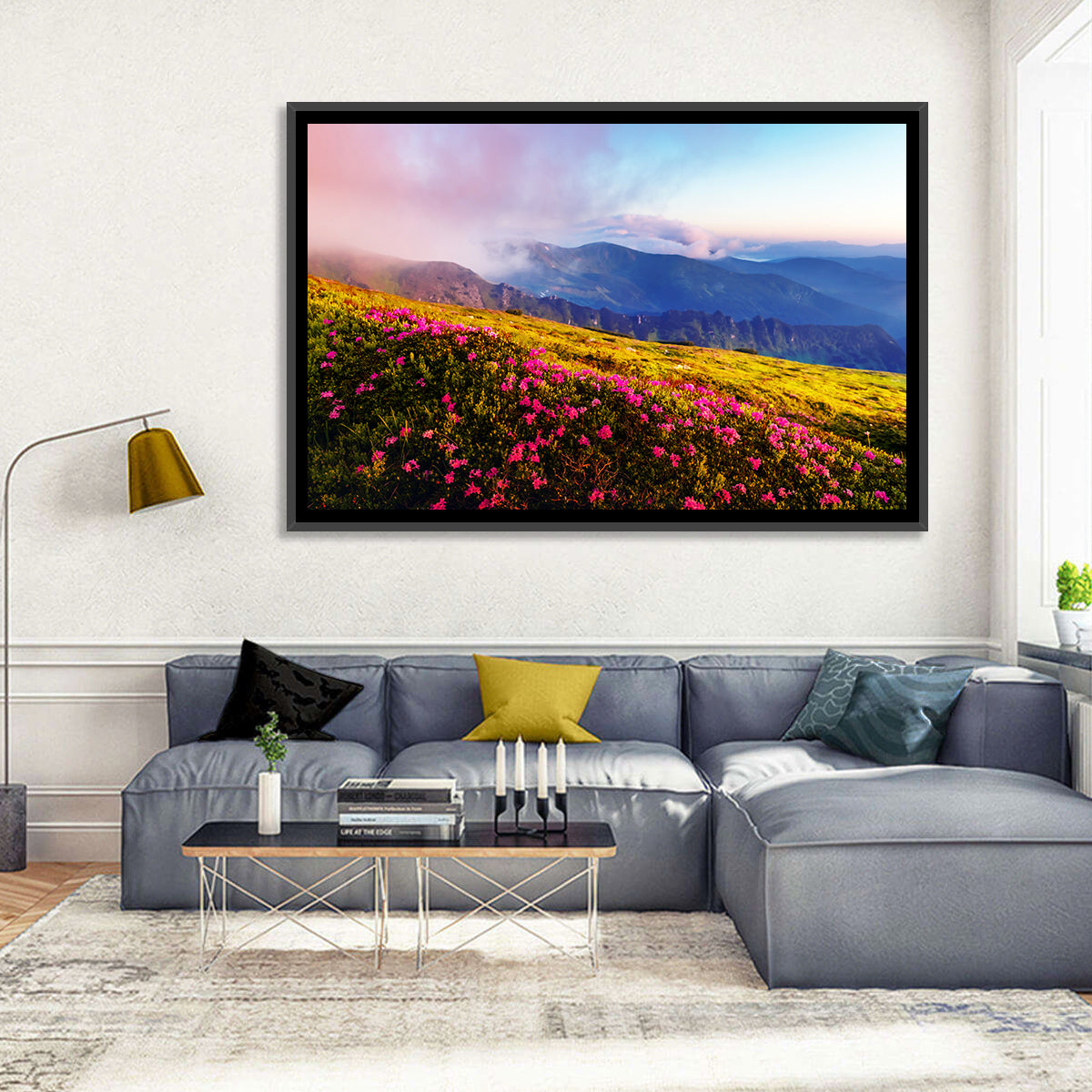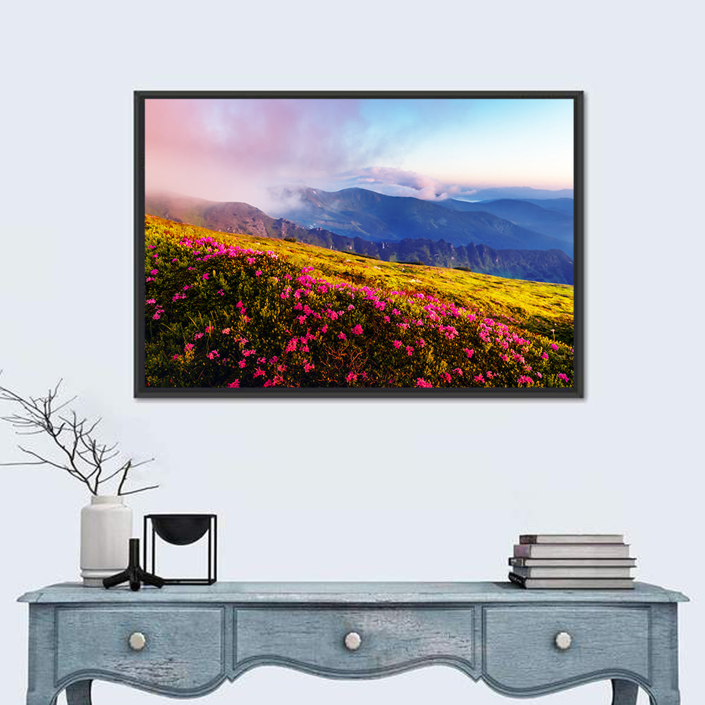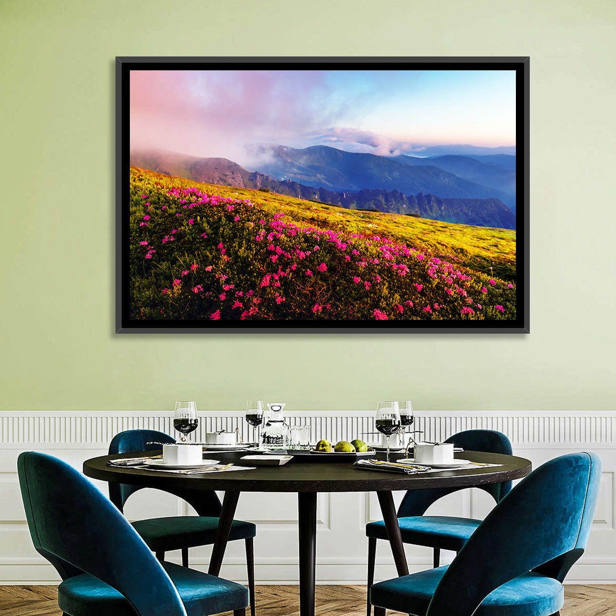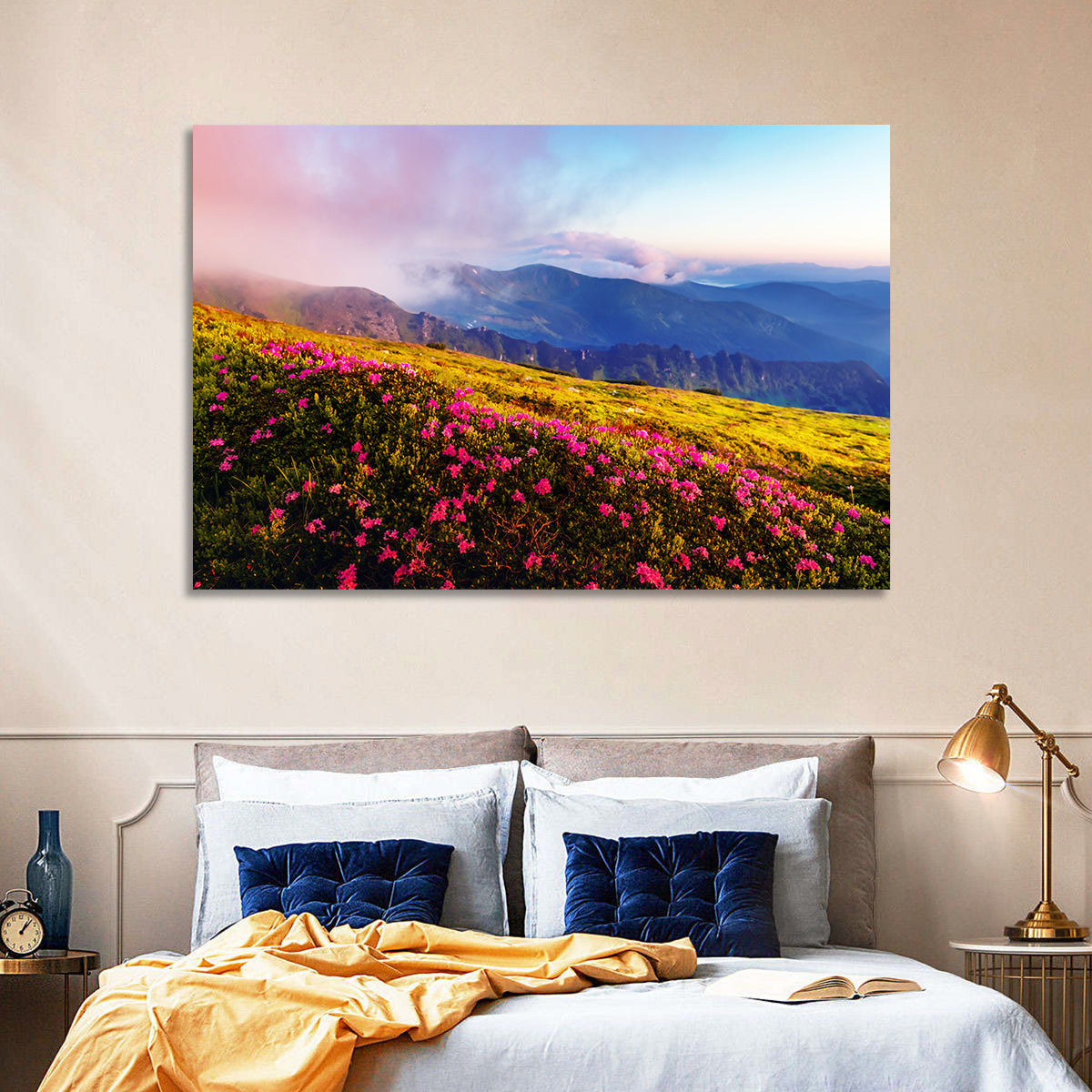 Whether you love art or just looking to decorate your home, this striking and powerful Rhododendron Floral Meadows Wall Art is an eye-catching decor element that can't go unnoticed. This art print by CanvasPiece is designed to resonate and spark a mix of feelings.
