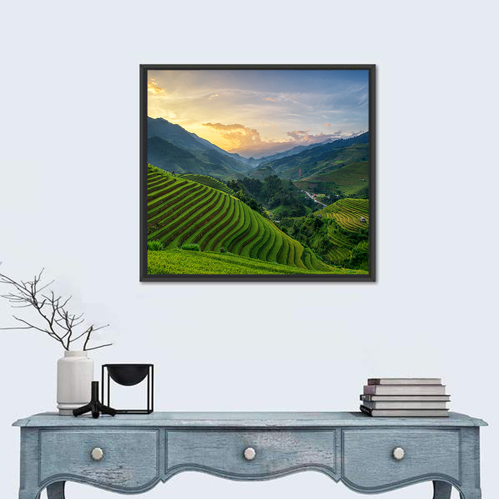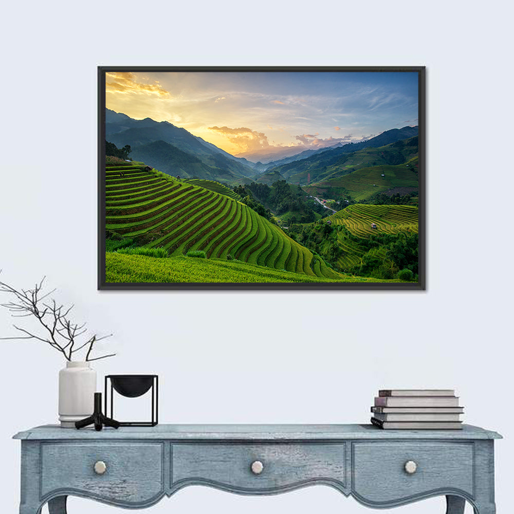 Experience the beauty of Vietnam's rice fields in the comfort of your own home with this stunning wall art by CanvasPiece. Featuring a rain-soaked landscape in Mu Cang Chai, Yen Bai, this piece is sure to captivate and inspire. Add an artistic touch to your space and immerse yourself in the natural beauty of Vietnam.