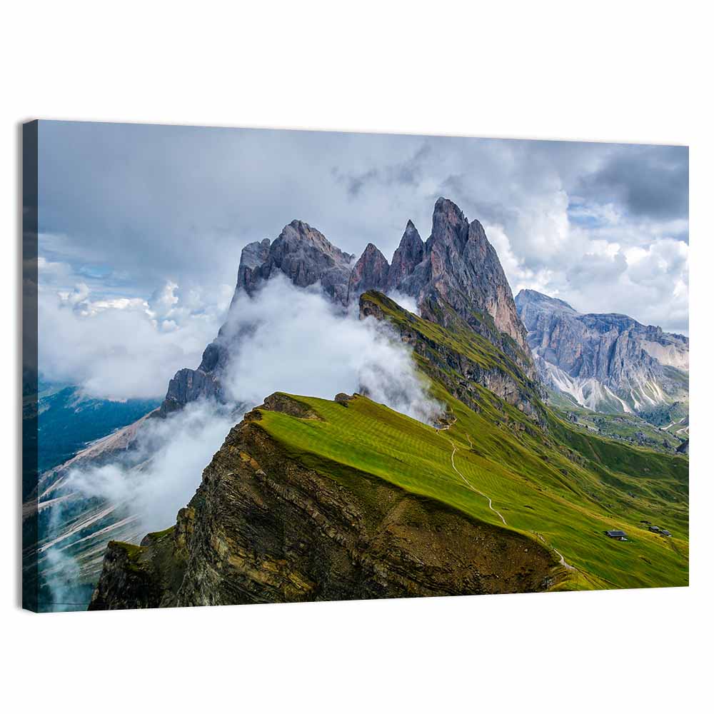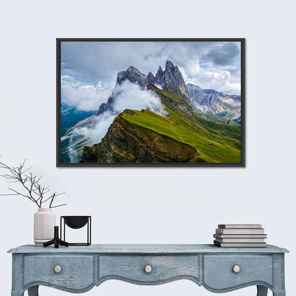 Whether you love art or just looking to decorate your home, this striking and powerful Odle mountain range, Seceda peak in dolomites, Italy Wall Art is an eye-catching decor element that can't go unnoticed. This art print by CanvasPiece is designed to resonate and spark a mix of feelings.