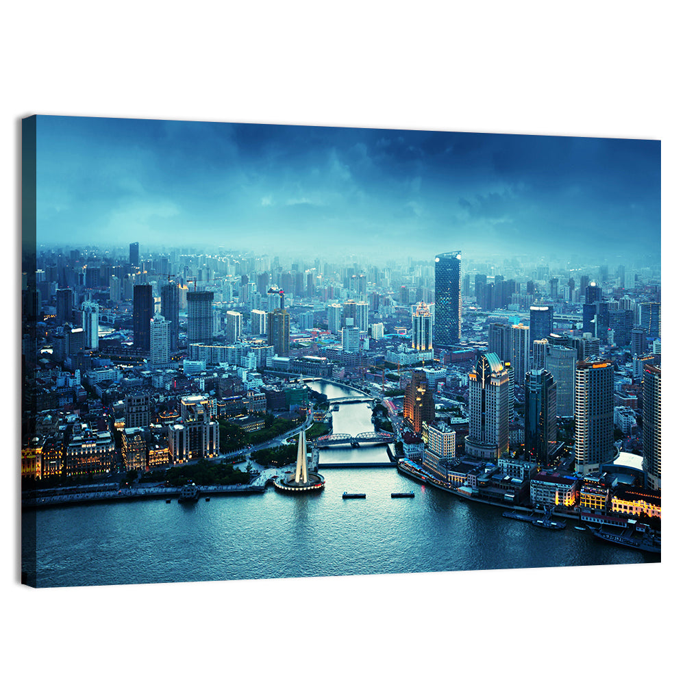 Elevate your home decor with this striking and powerful Shanghai at sunset wall art. Expertly designed by CanvasPiece, this art print captures the captivating skyline of China's bustling city and evokes a mix of emotions. Perfect for art enthusiasts and interior design lovers alike.