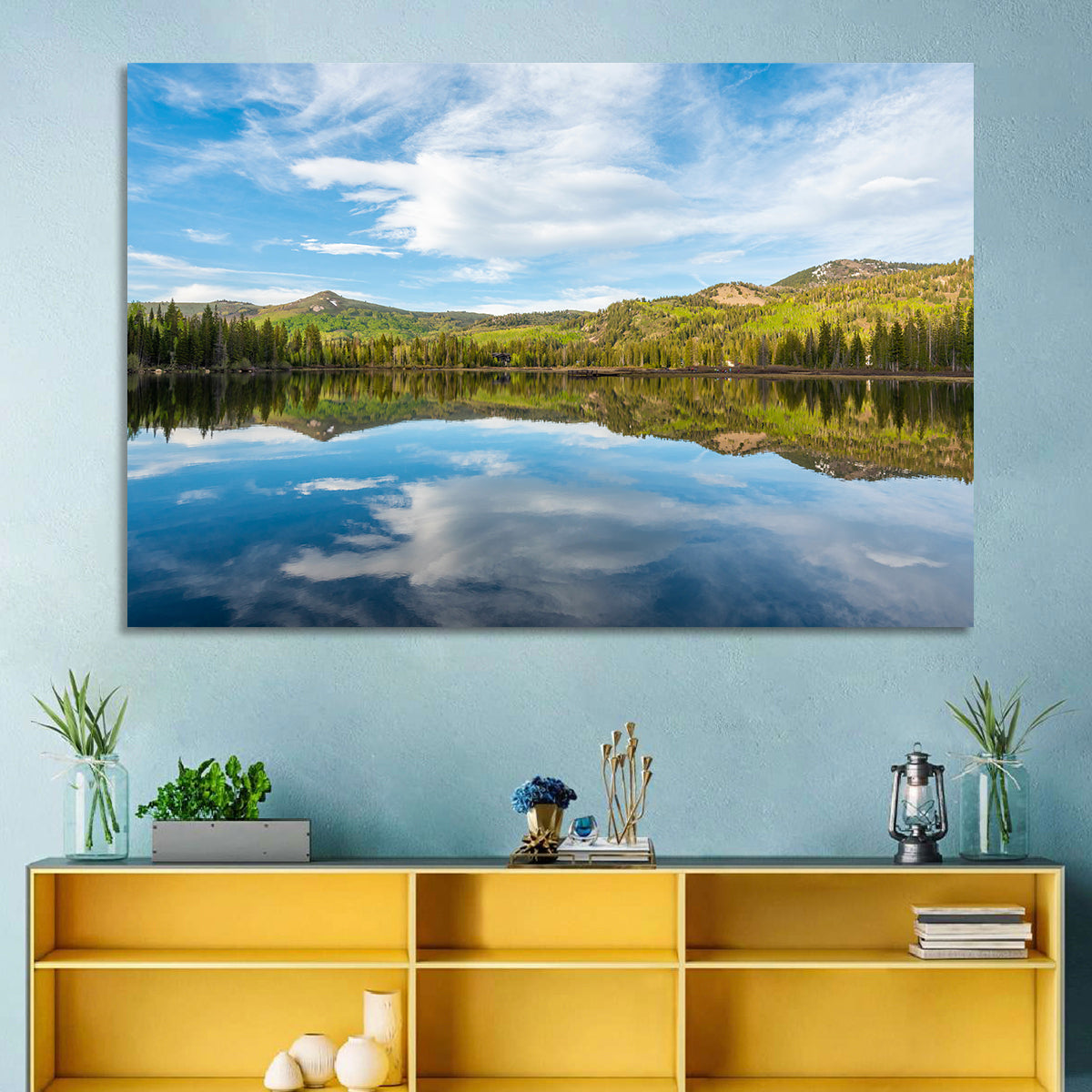 Whether you love art or just looking to decorate your home, this striking and powerful Silver Lake Wall Art is an eye-catching decor element that can't go unnoticed. This art print by CanvasPiece is designed to resonate and spark a mix of feelings.