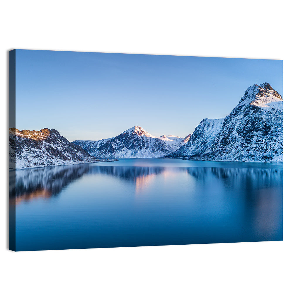 Whether you love art or just looking to decorate your home, this striking and powerful Snowy Lofoten Island Wall Art is an eye-catching decor element that can't go unnoticed. This art print by CanvasPiece is designed to resonate and spark a mix of feelings.