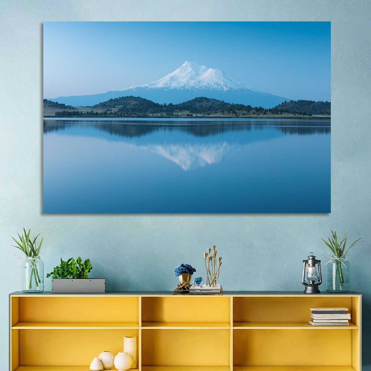 Whether you love art or just looking to decorate your home, this striking and powerful Snowy Mount Shasta Wall Art is an eye-catching decor element that can't go unnoticed. This art print by CanvasPiece is designed to resonate and spark a mix of feelings.