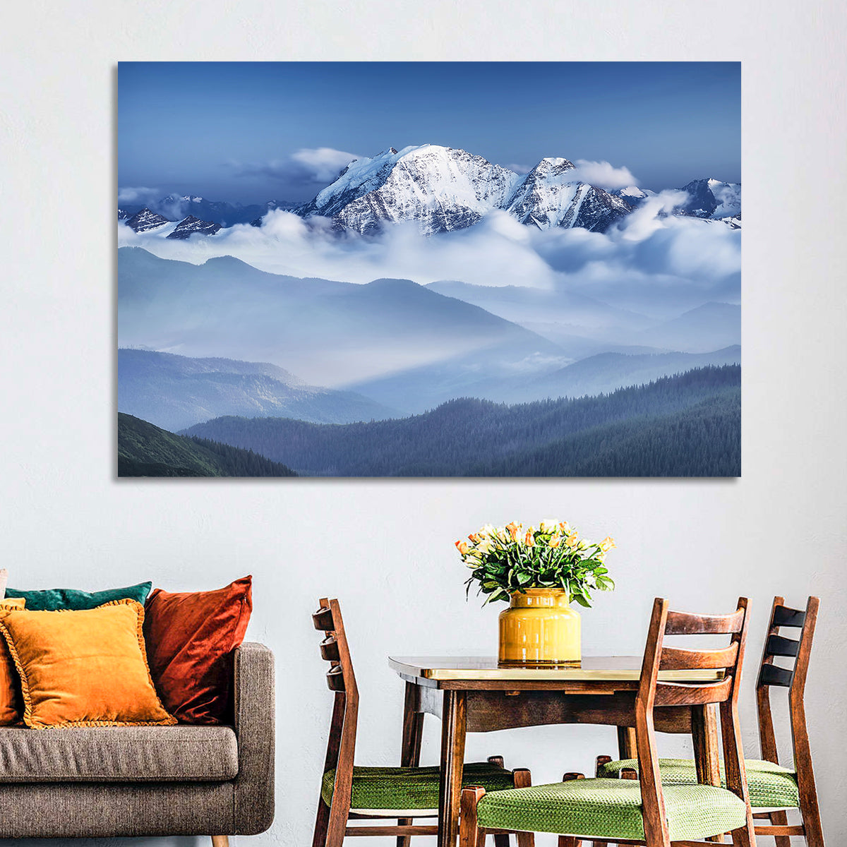 Whether you love art or just looking to decorate your home, this striking and powerful Snowy Mountain Clouds Wall Art is an eye-catching decor element that can't go unnoticed. This art print by CanvasPiece is designed to resonate and spark a mix of feelings.