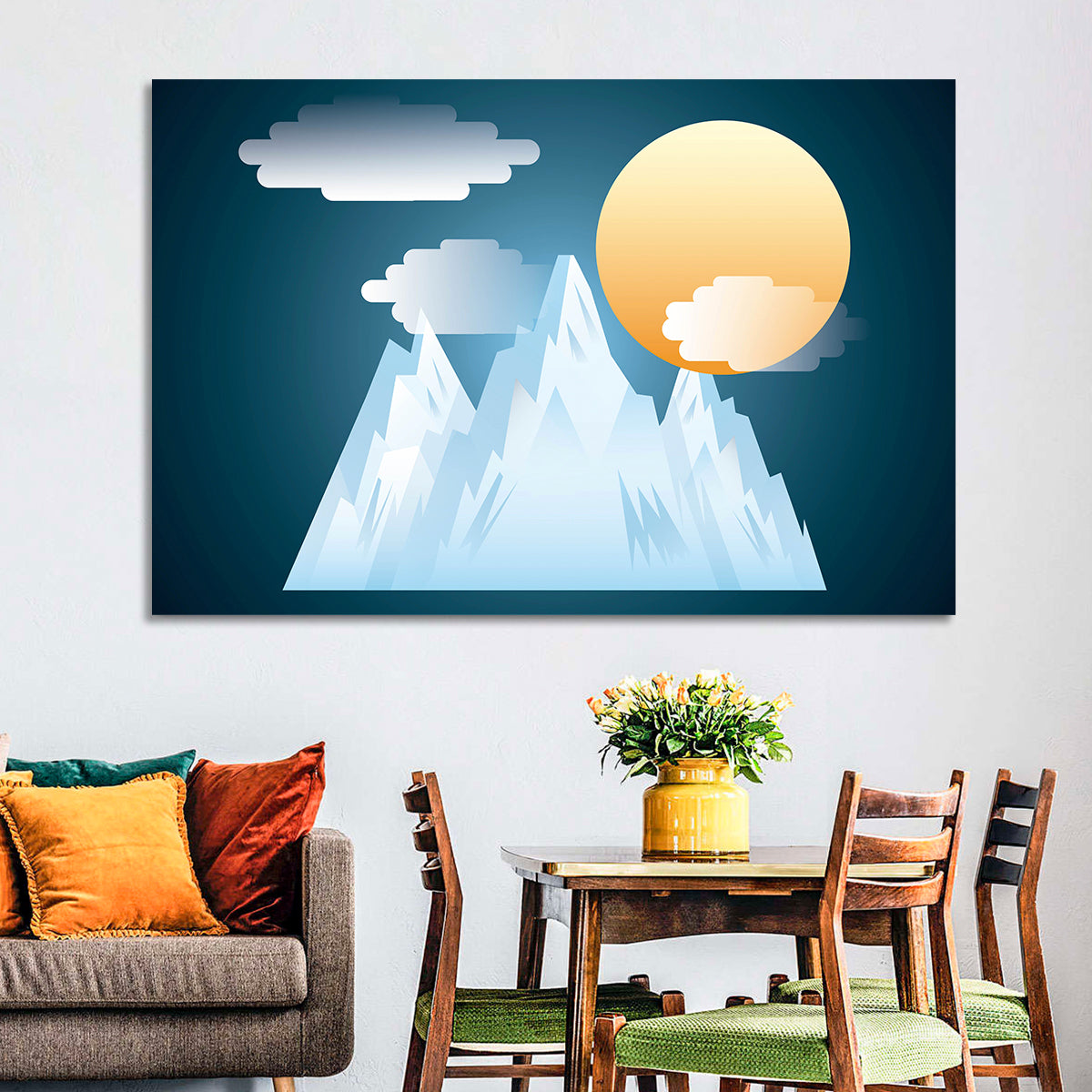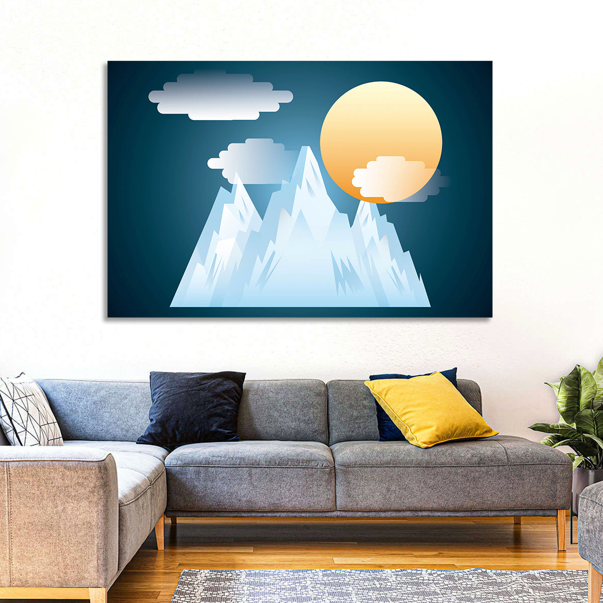 Whether you love art or just looking to decorate your home, this striking and powerful Snowy Mountain Illustration Wall Art is an eye-catching decor element that can't go unnoticed. This art print by CanvasPiece is designed to resonate and spark a mix of feelings.
