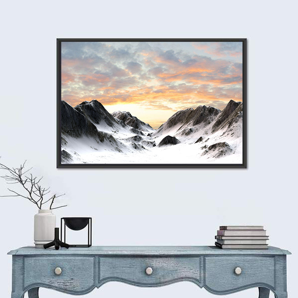 This Snowy Mountains Peak wall art by CanvasPiece is a must-have for art lovers and home decorators. Its striking composition and powerful imagery are guaranteed to make a statement in any room. Expertly designed to evoke a range of emotions, this art print is a timeless addition to your home decor.