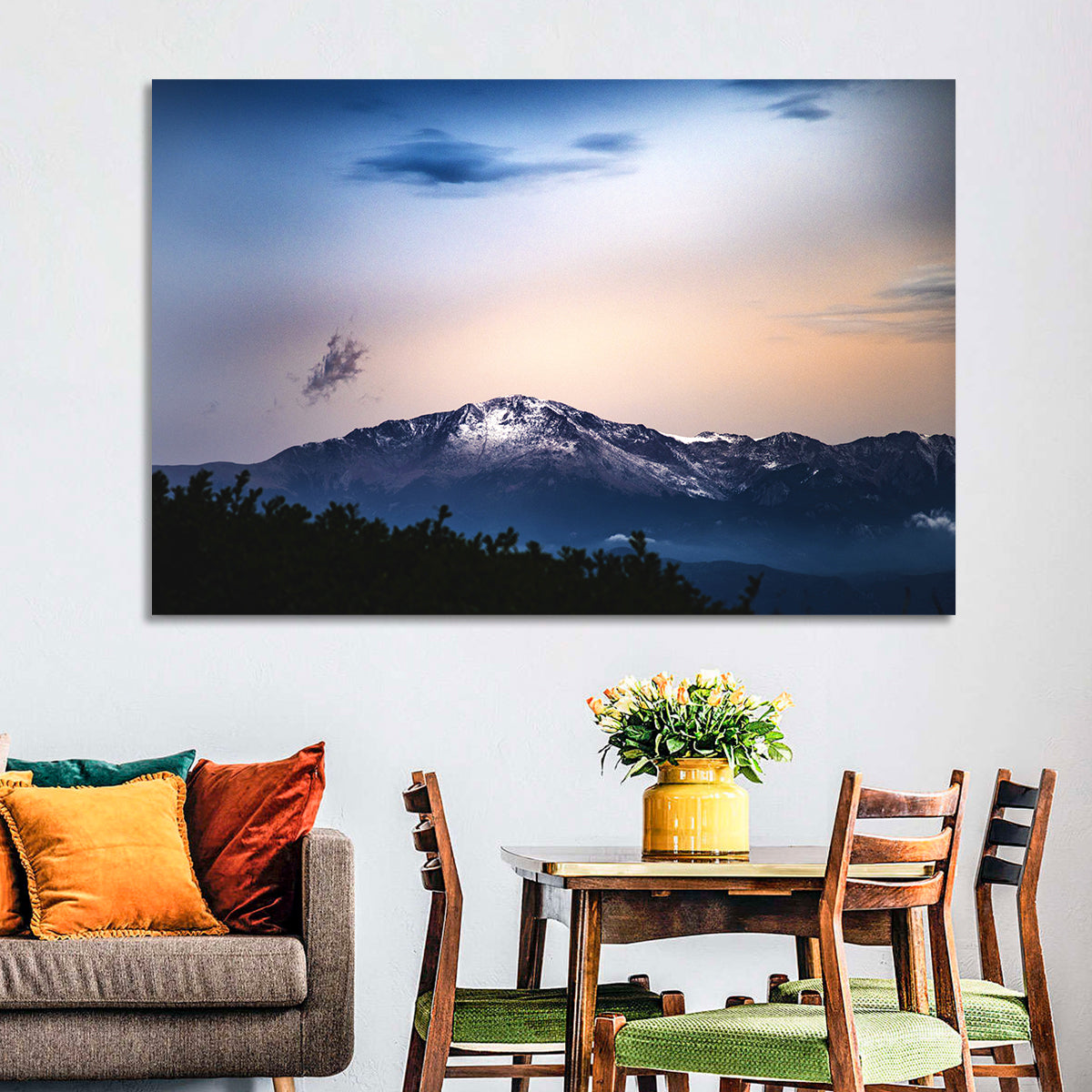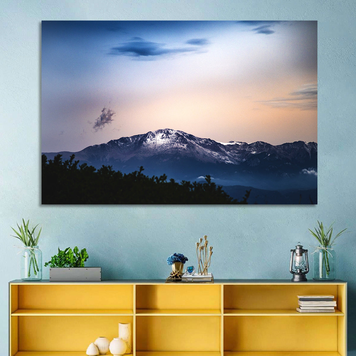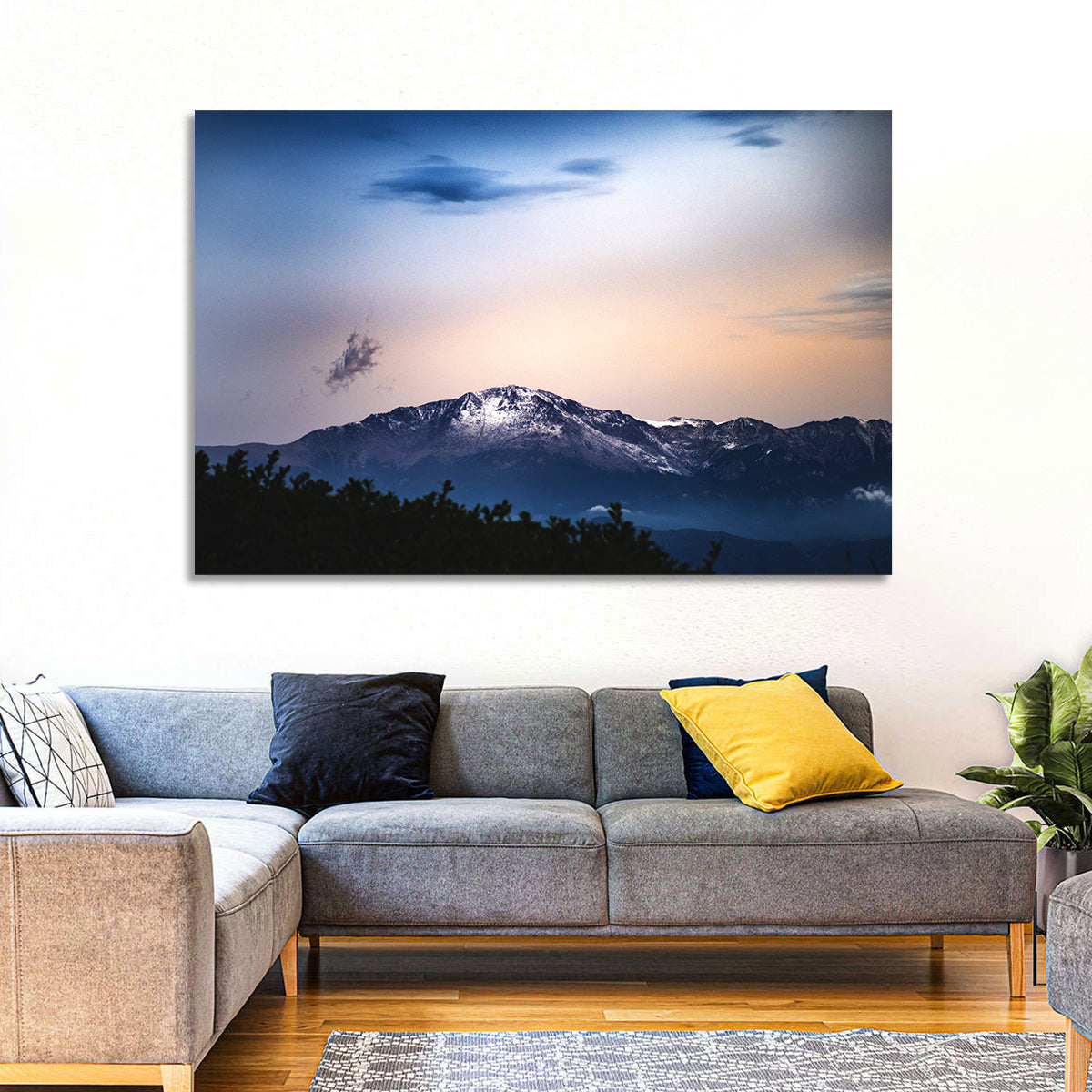 Whether you love art or just looking to decorate your home, this striking and powerful Snowy Pikes Peak Wall Art is an eye-catching decor element that can't go unnoticed. This art print by CanvasPiece is designed to resonate and spark a mix of feelings.