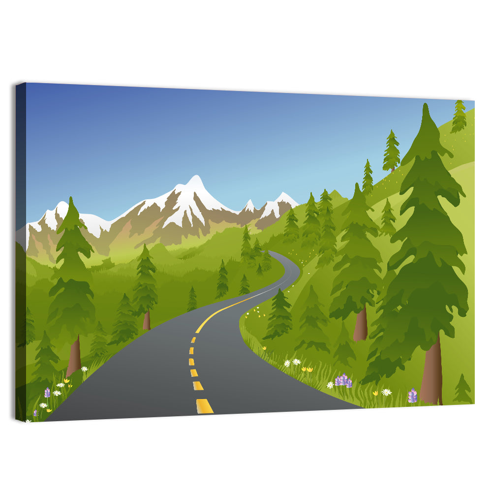 Whether you love art or just looking to decorate your home, this striking and powerful summer mountain road illustration wall art is an eye-catching decor element that can't go unnoticed. This art print by CanvasPiece is designed to resonate and spark a mix of feelings.