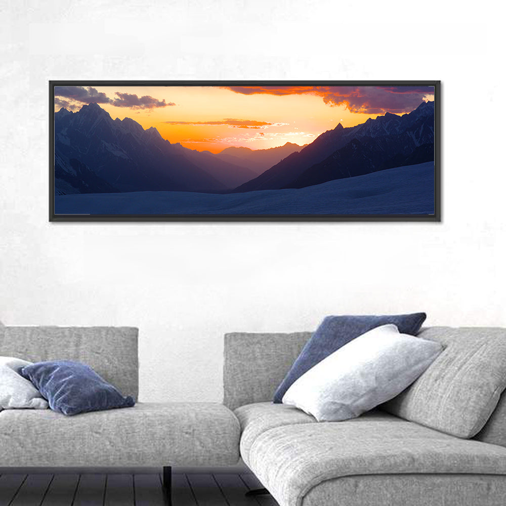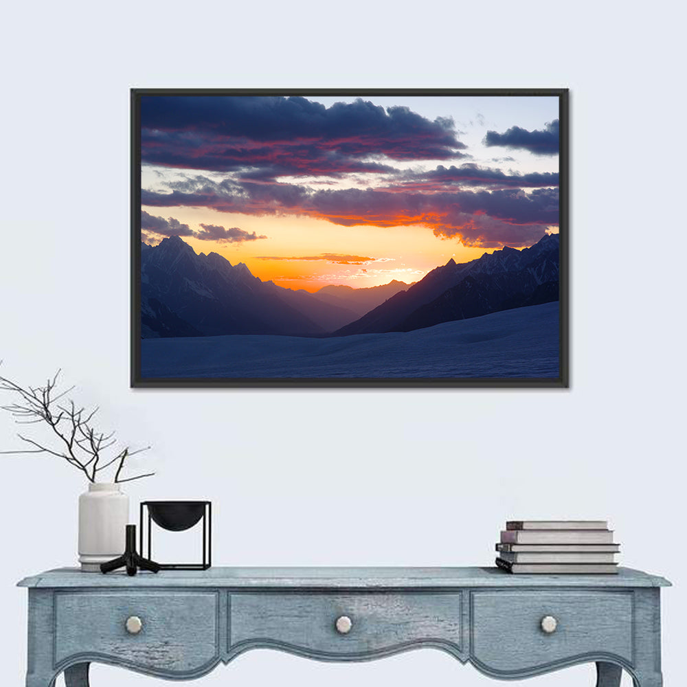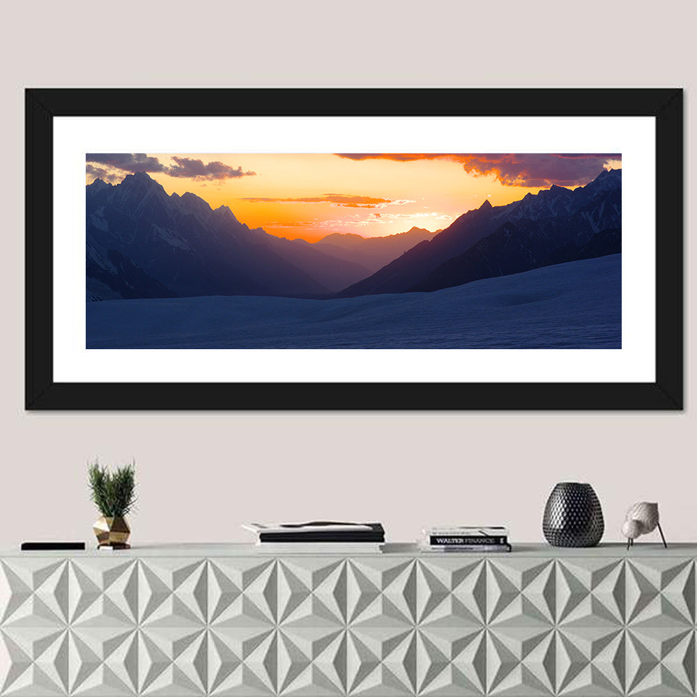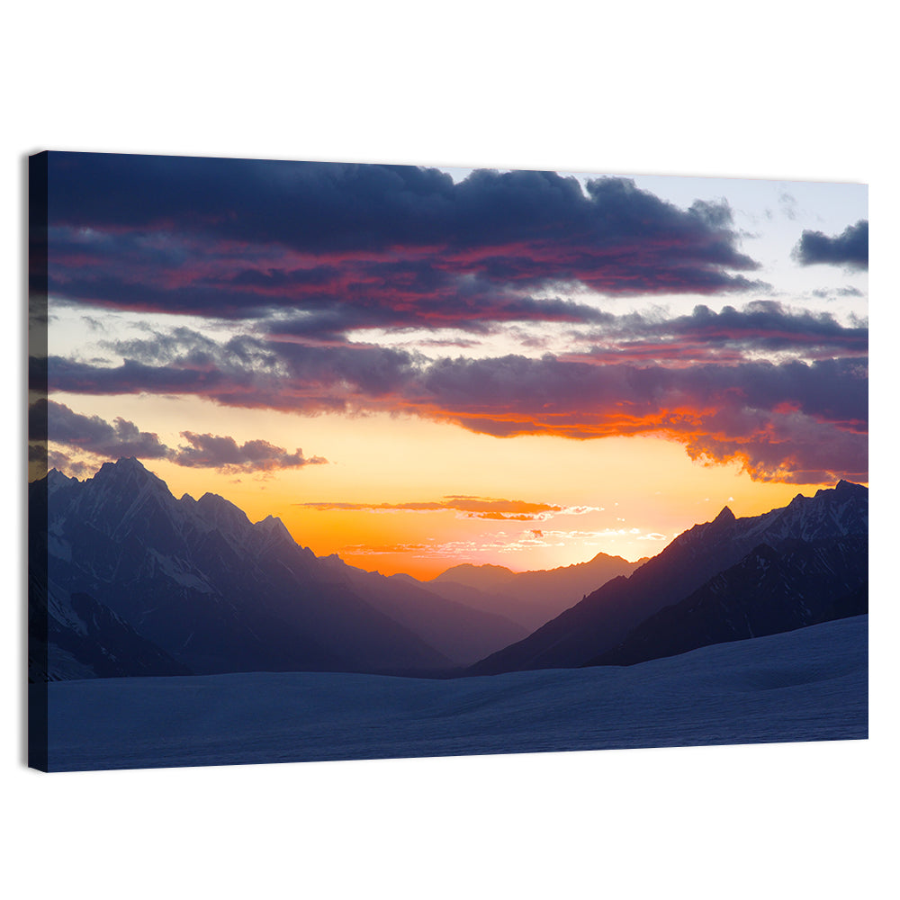 Whether you love art or just looking to decorate your home, this striking and powerful sunset over hispar pass wall art is an eye-catching decor element that can't go unnoticed. This art print by CanvasPiece is designed to resonate and spark a mix of feelings.