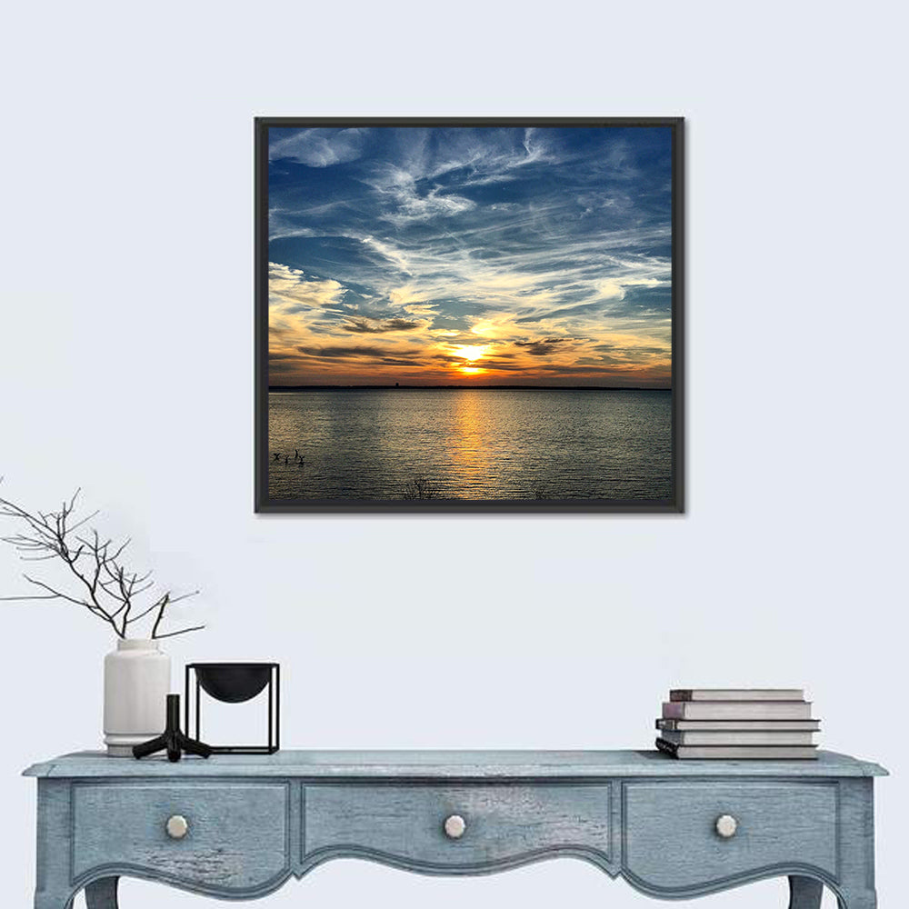 Whether you love art or just looking to decorate your home, this striking and powerful Texoma lake sunset Wall Art is an eye-catching decor element that can't go unnoticed. This art print by CanvasPiece is designed to resonate and spark a mix of feelings.