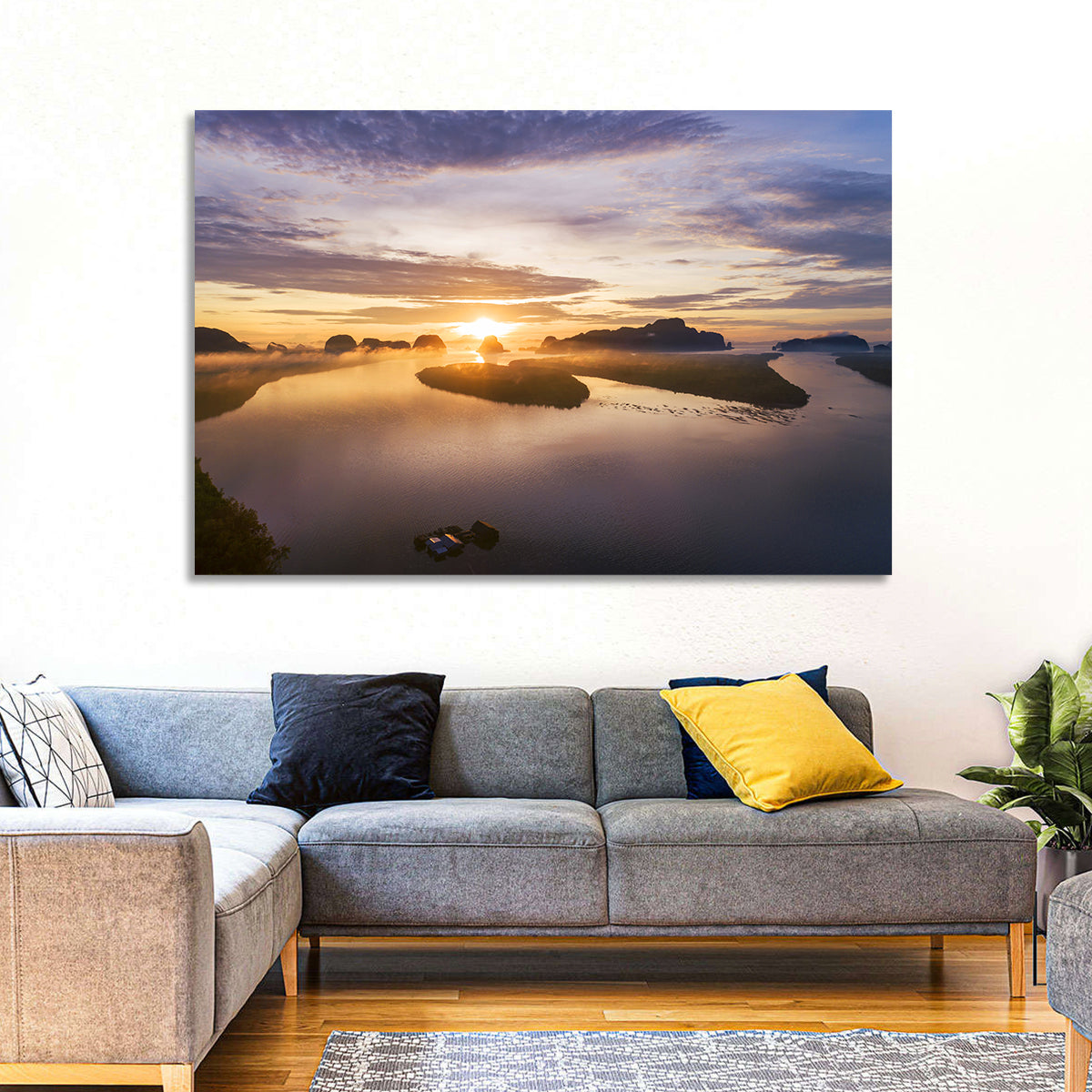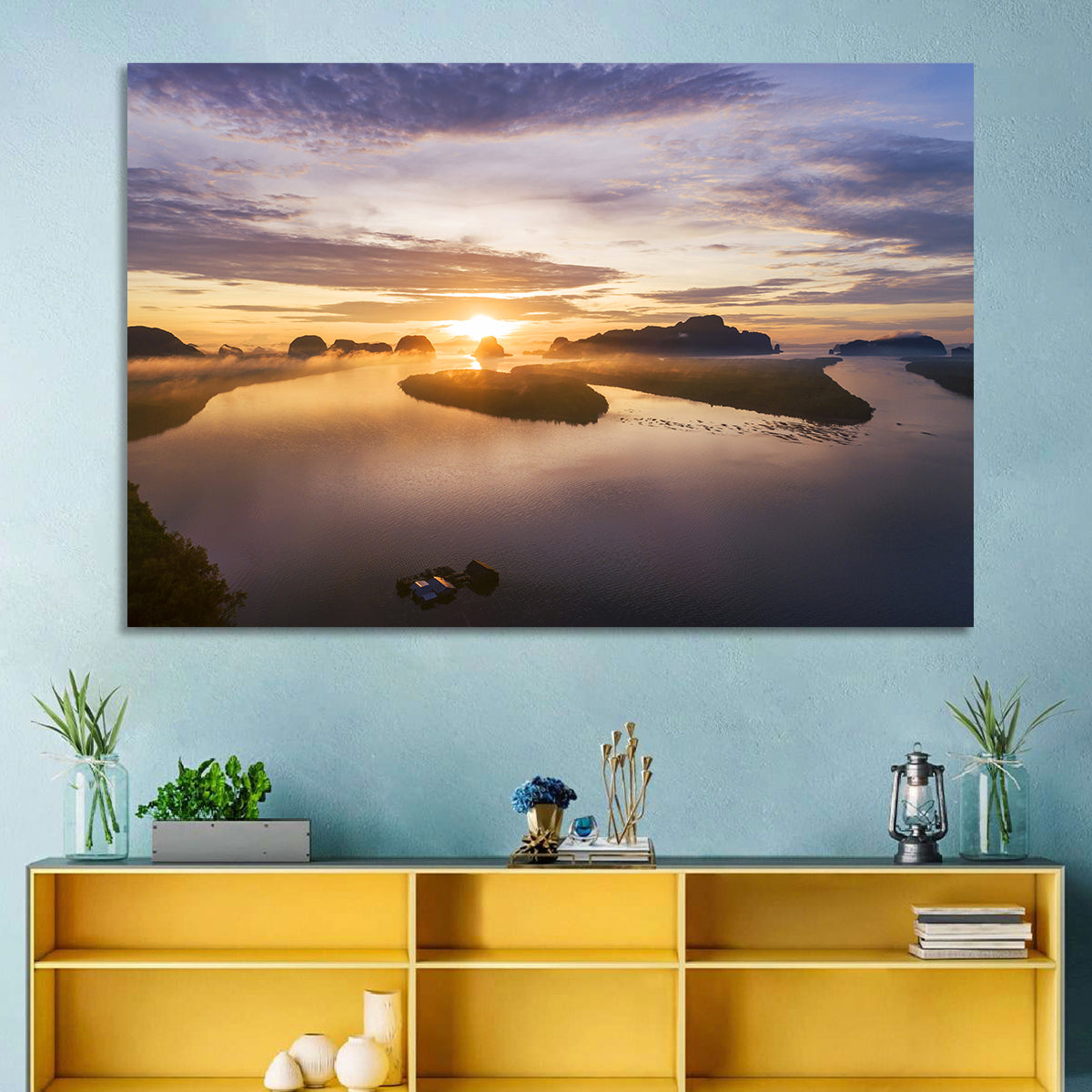 Whether you love art or just looking to decorate your home, this striking and powerful Thailand Mountains Sunrise Wall Art is an eye-catching decor element that can't go unnoticed. This art print by CanvasPiece is designed to resonate and spark a mix of feelings.