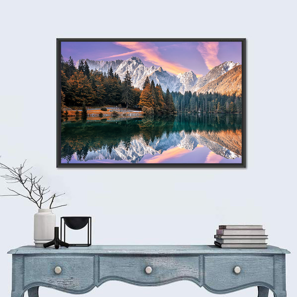 Elevate your home with the striking and powerful The Fusine Mountain Lake Wall Art. This CanvasPiece print captures the beauty of the Mongart under sunlight, evoking a mix of emotions. Perfect for art lovers or those looking to decorate, this eye-catching piece is sure to make a statement in any room.