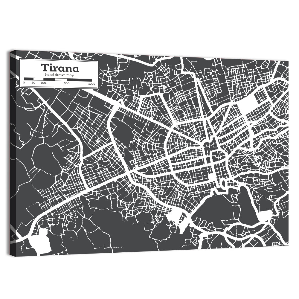 Tirana City Map Albania Wall Art