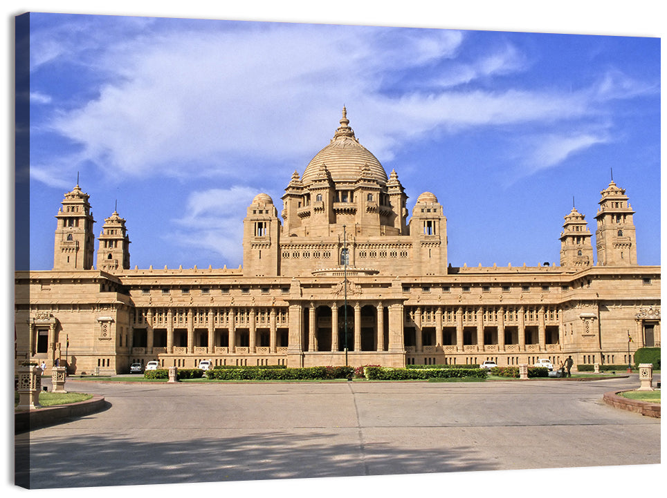 Whether you love art or just looking to decorate your home, this striking and powerful Umaid Bhawan Palace Wall Art is an eye-catching decor element that can't go unnoticed. This art print by CanvasPiece is designed to resonate and spark a mix of feelings.