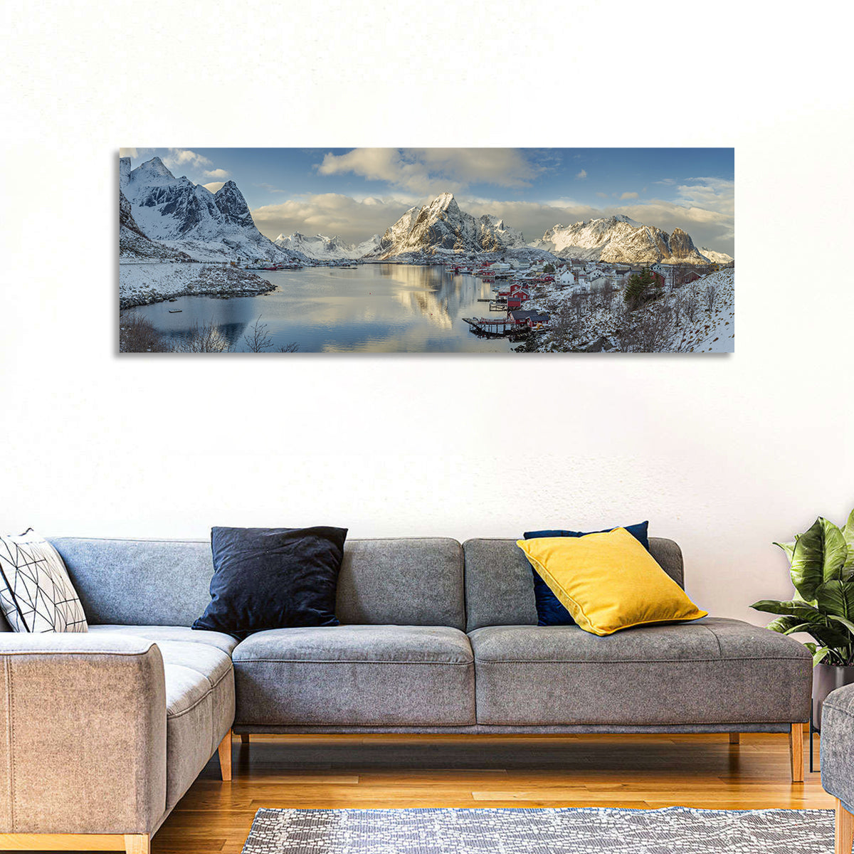 Whether you love art or just looking to decorate your home, this striking and powerful fishing village Reine Wall Art is an eye-catching decor element that can't go unnoticed. This art print by CanvasPiece is designed to resonate and spark a mix of feelings.