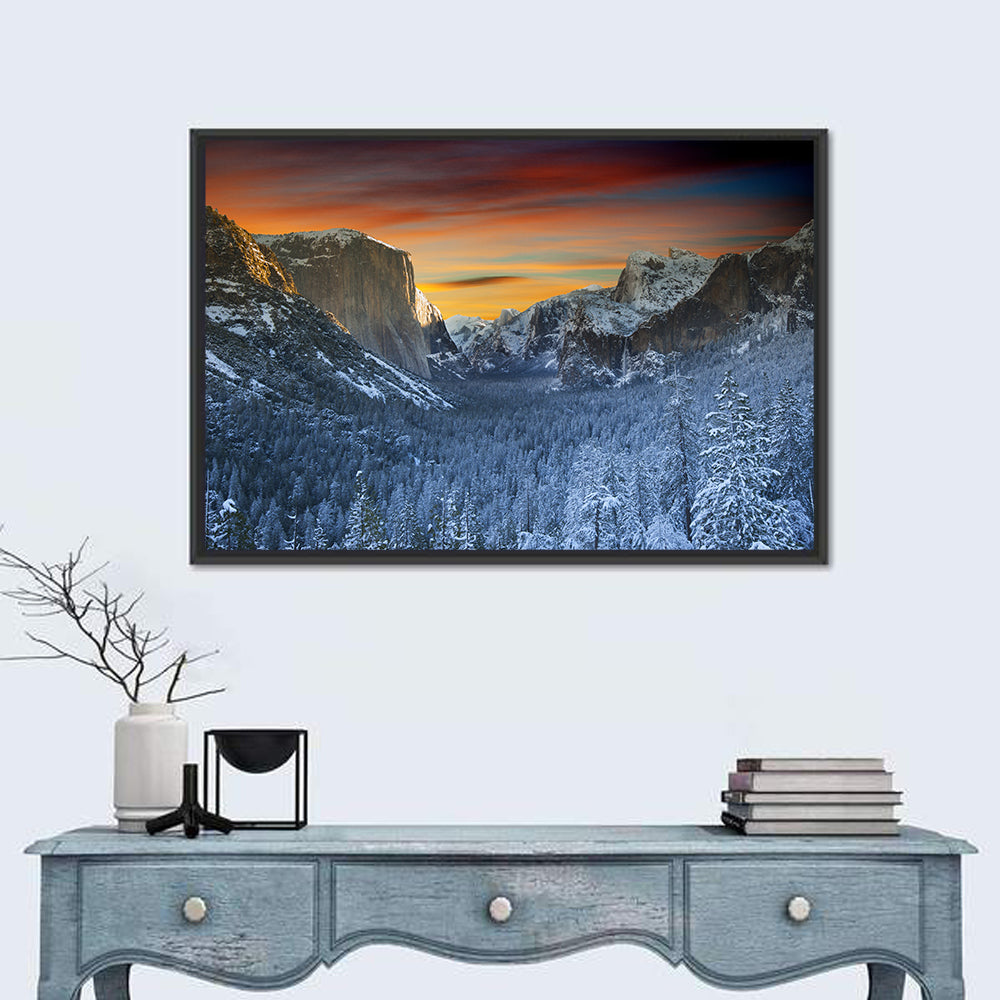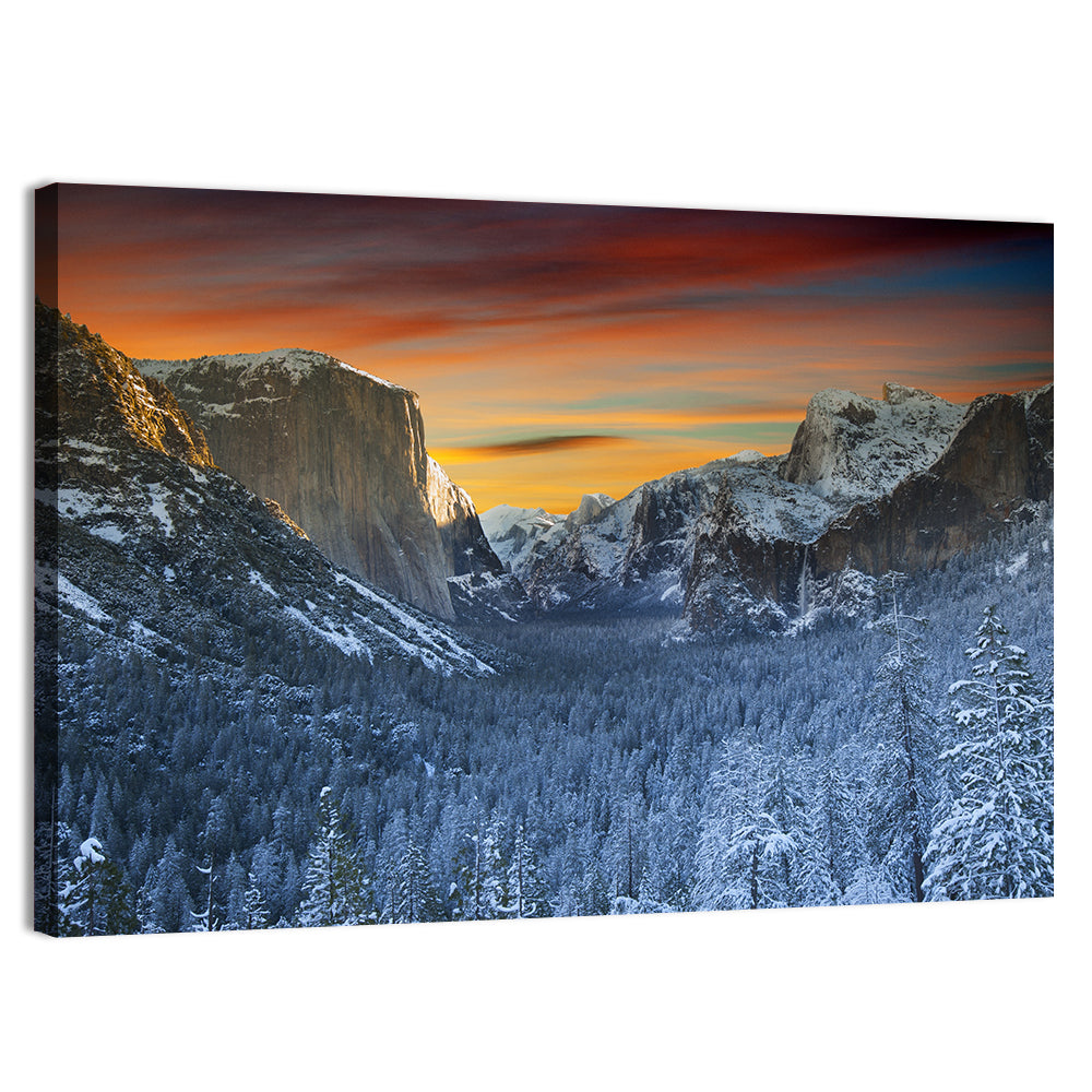 Experience the beauty of Yosemite National Park in the winter with this striking wall art by CanvasPiece. Featuring a powerful, eye-catching design, this print is sure to add a touch of nature to your home decor. Perfect for art lovers and those looking to add a unique touch to their space.